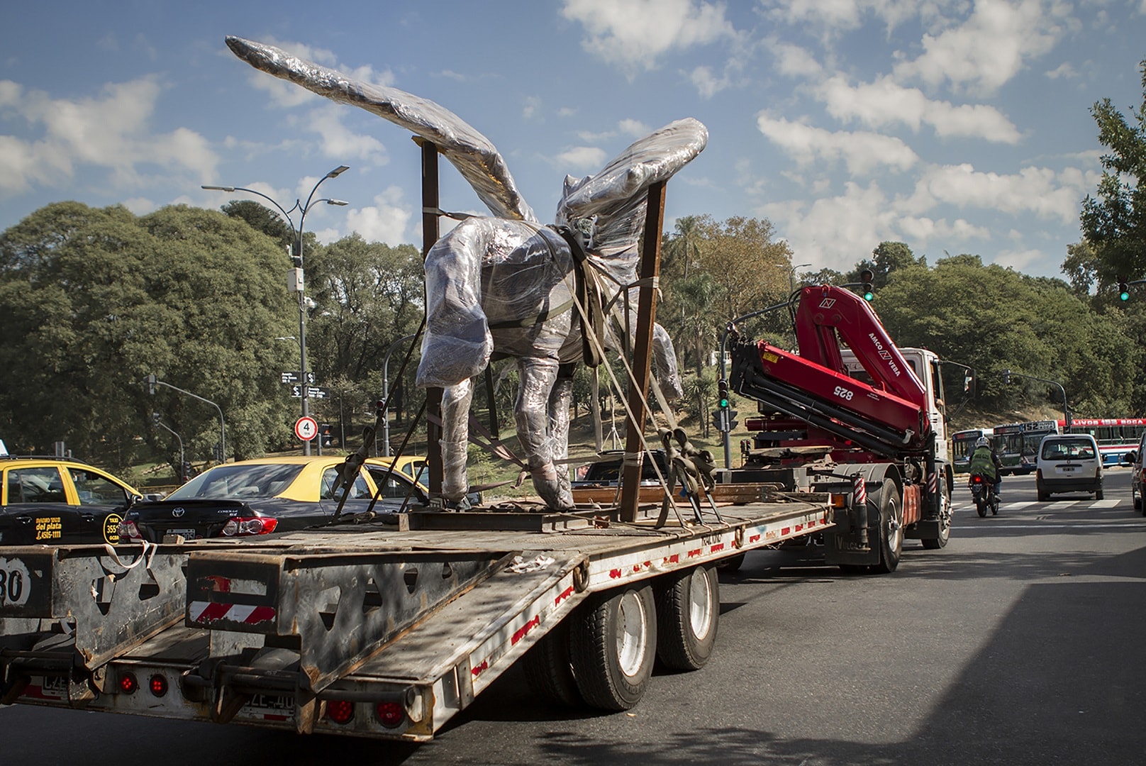 - Se disponen grúas, bastidores y todo otro elemento de protección para la perfecta conservación de las obras de arte en su traslado y disposición en destino.